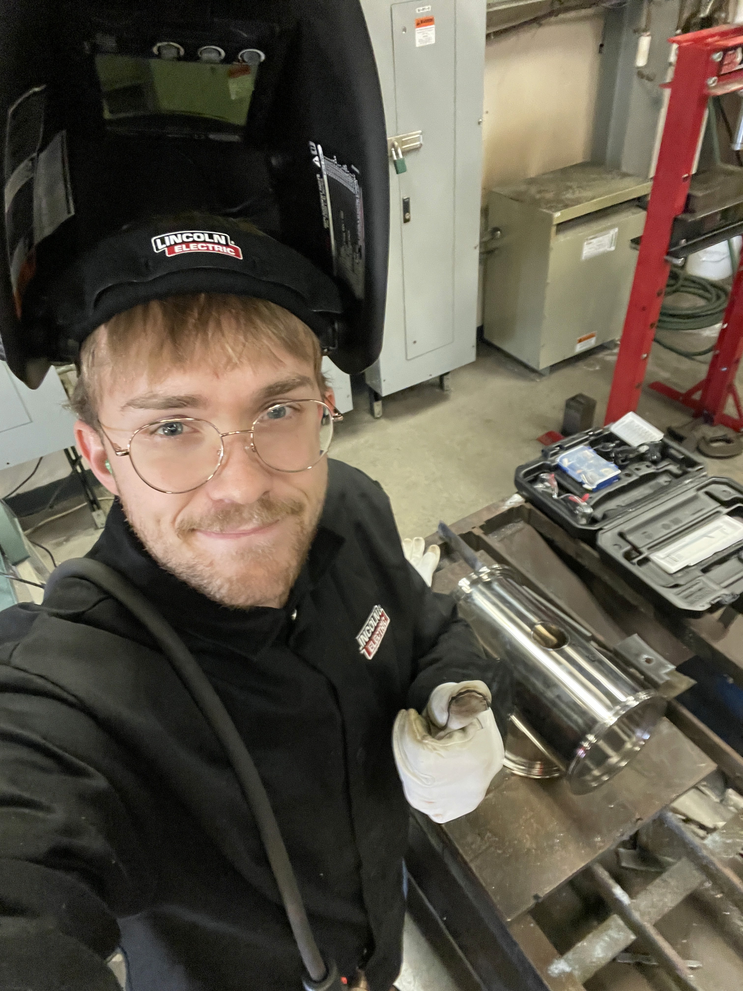 With a functional vacuum system tested and working, the construction of a proper high vacuum chamber could begin. With the turbo pump adapter having a ISO160 flange, it made the most sense to build something to directly attach to this. This resulted in the most cost effective solution being the purchasing of a stainless steel ISO160 Tee. This choice was not only cost effective, but also came with two full ISO160 flanges for future expansion. However, this tee's ability to add feedthroughs was quickly outgrown. This was remedied by cutting into the tee and welding in KF25 and KF50 stubs. The end result is an ISO160 tee with two free ISO160 flanges, two KF25 flanges, and two KF50 flanges.