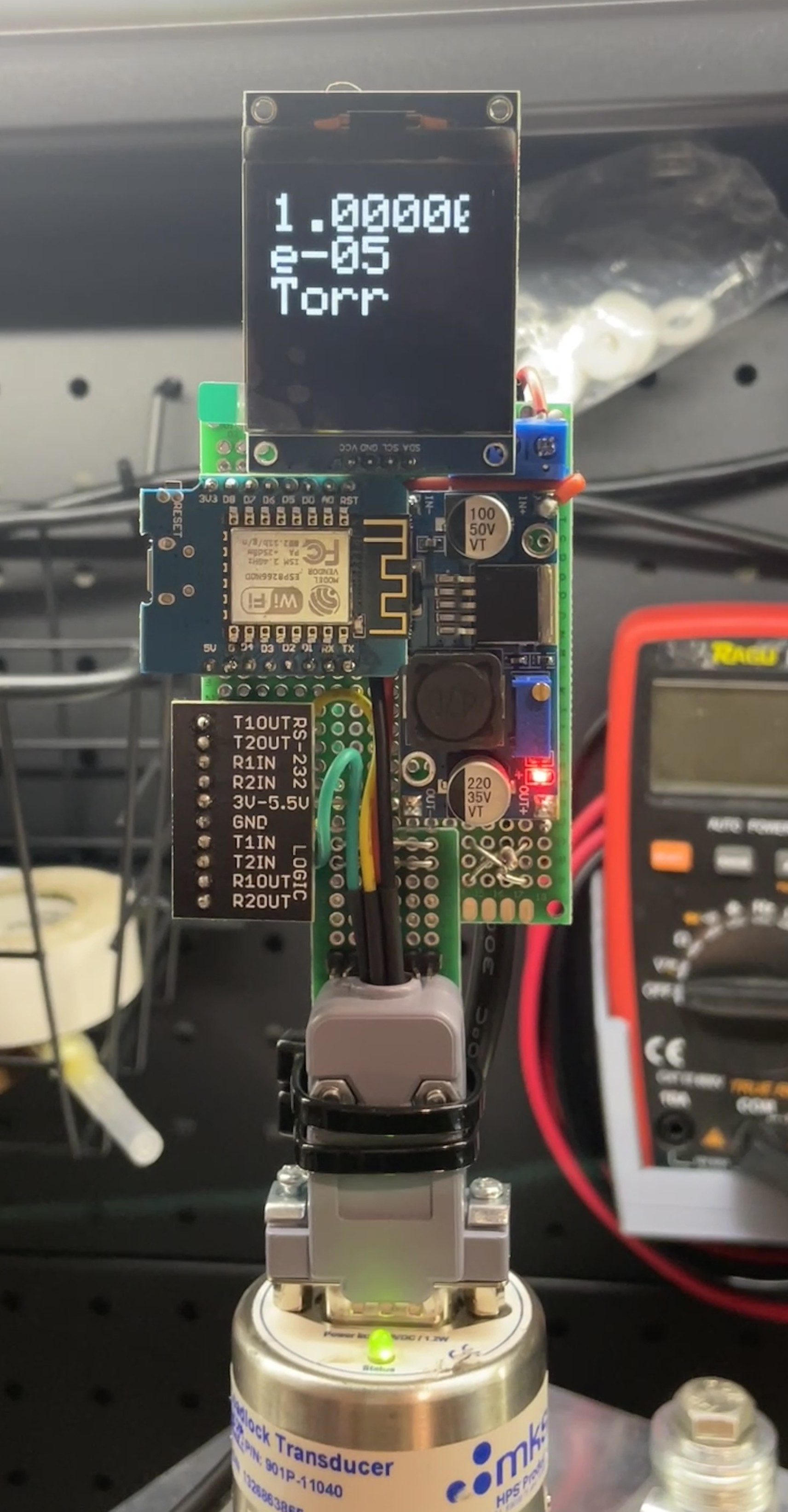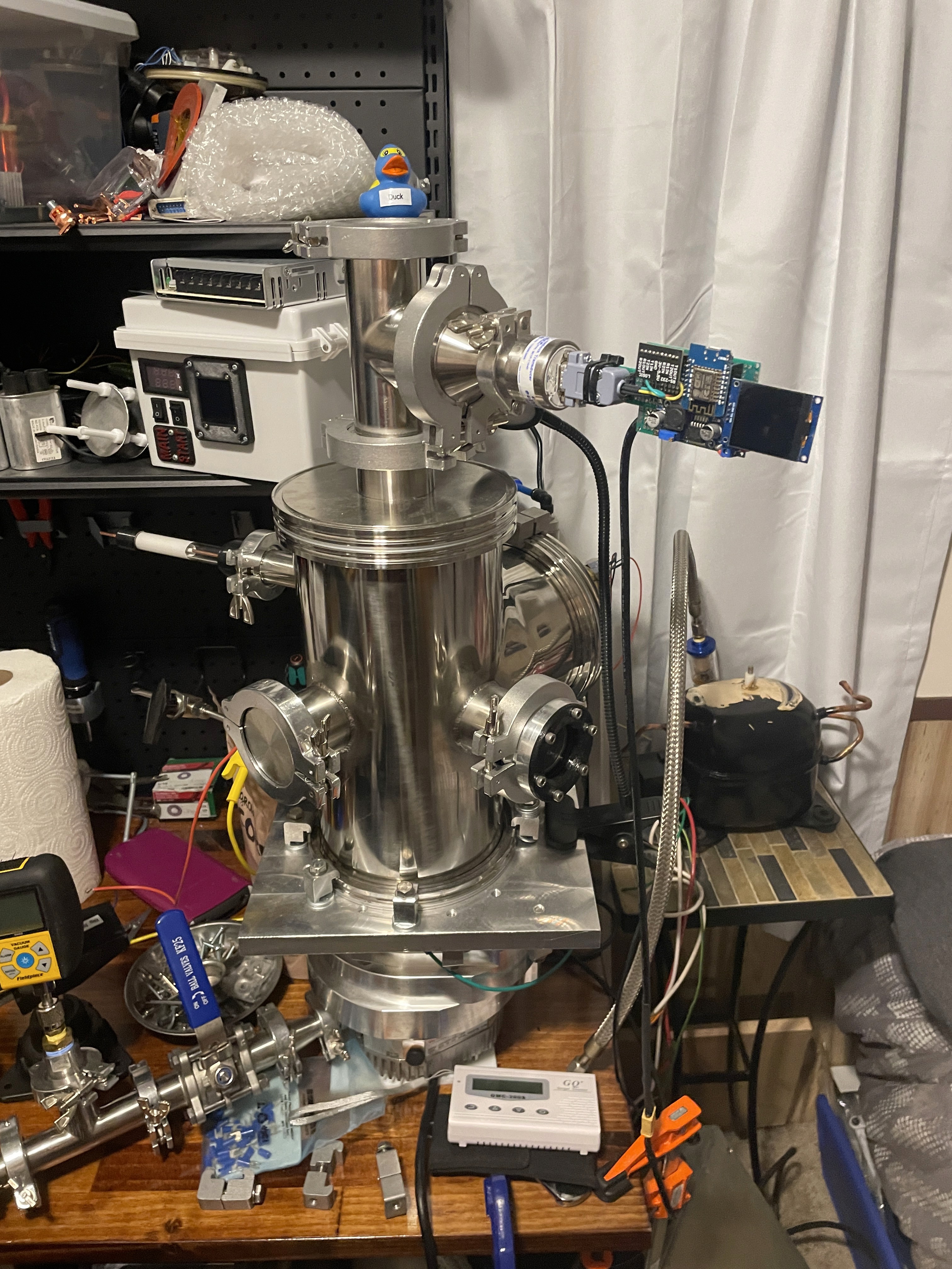 At the same time, a used MKS 901P vacuum transducer was purchased as the first purchased vacuum gauge could not measure below 10^-3 torr. This transducer similarly received a control unit for easy readout and powering. With these upgrades I finally crossed the high vacuum barrier with pressures below 10^-5 torr, maxing out my gauge's ability to measure.