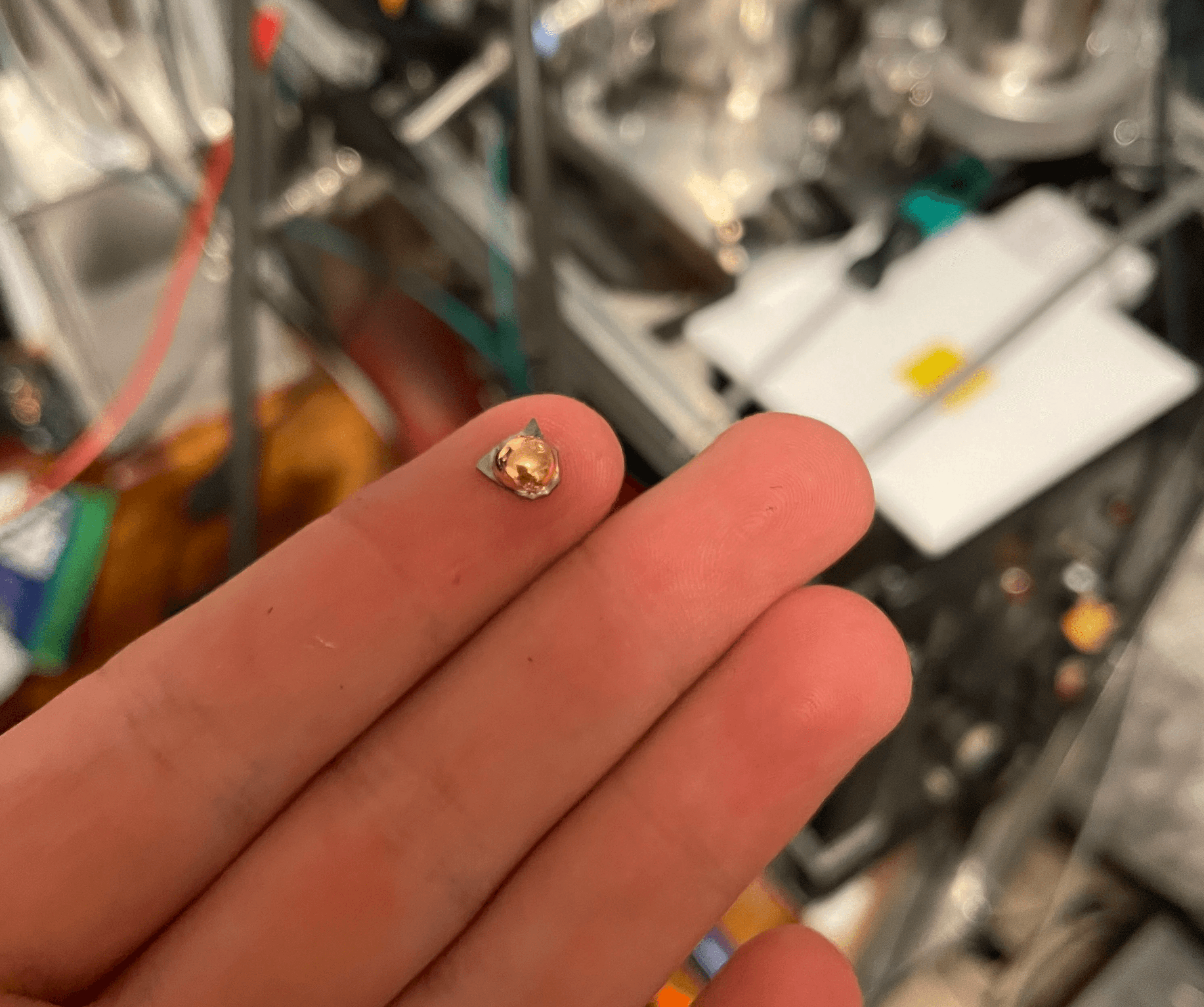 With the lesson learned to minimize melt pool volume, the next test used a small piece of commerical pure nickel (melting point ~1450 deg C). This also effectively deposited on multiple surfaces in the chamber.